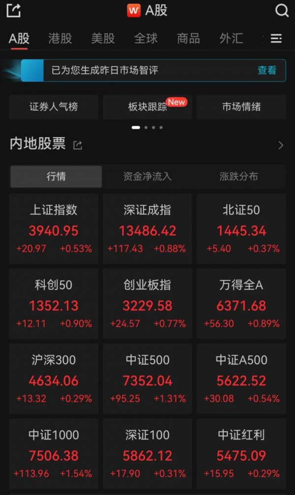 超4100只个股高潮!A股三大指数集体飘红